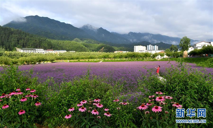 7月1日,市民在位于留壩縣城的金水灣花海拍照。近日,陜西省漢中市留壩縣金水灣花海的各類鮮花次第綻放,絢麗繽紛。新華社記者劉瀟攝