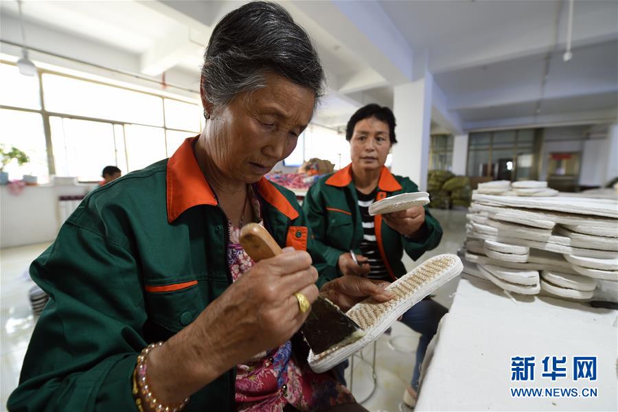 7月2日,臨夏縣百利布鞋加工農(nóng)民專業(yè)合作社員工在加工布鞋。甘肅省臨夏回族自治州臨夏縣將布鞋加工定為重點扶持發(fā)展的產(chǎn)業(yè),采用“政府+公司+貧困戶”的產(chǎn)業(yè)扶貧模式,由政府主導、企業(yè)出資,在貧困村建設“扶貧車間”,吸納貧困群眾從事布鞋加工產(chǎn)業(yè)增加收入。截至2019年底,當?shù)夭夹庸て髽I(yè)和加工戶遍及近百個行政村,從業(yè)人員達到4000多人,累計生產(chǎn)布鞋600多萬雙,實現(xiàn)銷售收入2.32億元。新華社記者范培珅攝