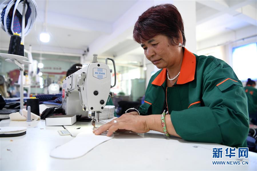 7月2日,臨夏縣百利布鞋加工農(nóng)民專業(yè)合作社員工在加工布鞋。甘肅省臨夏回族自治州臨夏縣將布鞋加工定為重點扶持發(fā)展的產(chǎn)業(yè),采用“政府+公司+貧困戶”的產(chǎn)業(yè)扶貧模式,由政府主導(dǎo)、企業(yè)出資,在貧困村建設(shè)“扶貧車間”,吸納貧困群眾從事布鞋加工產(chǎn)業(yè)增加收入。截至2019年底,當(dāng)?shù)夭夹庸て髽I(yè)和加工戶遍及近百個行政村,從業(yè)人員達到4000多人,累計生產(chǎn)布鞋600多萬雙,實現(xiàn)銷售收入2.32億元。新華社記者范培珅攝