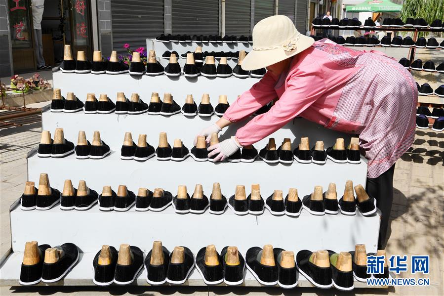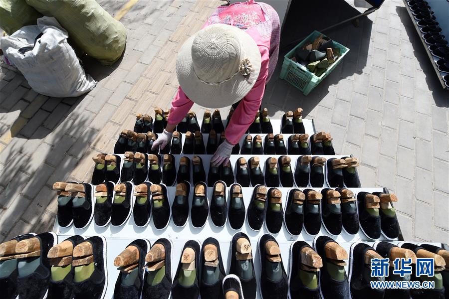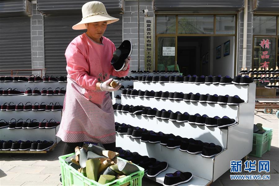 7月2日,臨夏縣百利布鞋加工農(nóng)民專業(yè)合作社員工在擺放布鞋。甘肅省臨夏回族自治州臨夏縣將布鞋加工定為重點扶持發(fā)展的產(chǎn)業(yè),采用“政府+公司+貧困戶”的產(chǎn)業(yè)扶貧模式,由政府主導(dǎo)、企業(yè)出資,在貧困村建設(shè)“扶貧車間”,吸納貧困群眾從事布鞋加工產(chǎn)業(yè)增加收入。截至2019年底,當(dāng)?shù)夭夹庸て髽I(yè)和加工戶遍及近百個行政村,從業(yè)人員達到4000多人,累計生產(chǎn)布鞋600多萬雙,實現(xiàn)銷售收入2.32億元。新華社記者范培珅攝