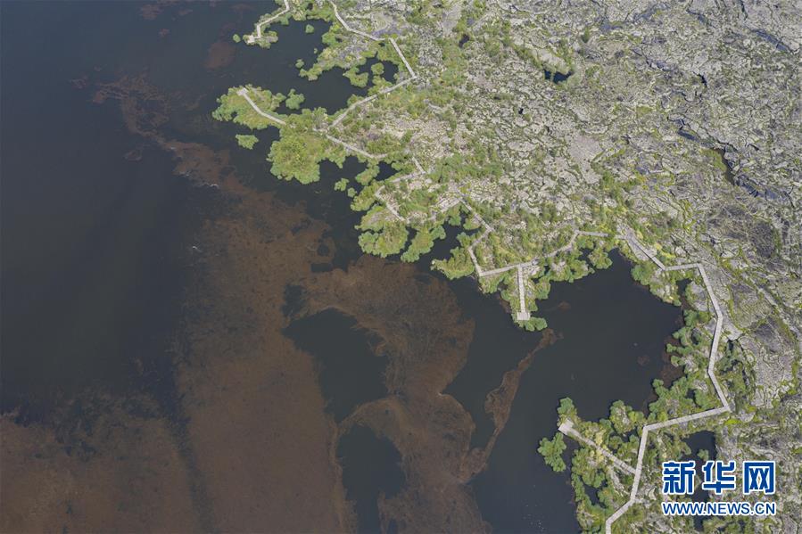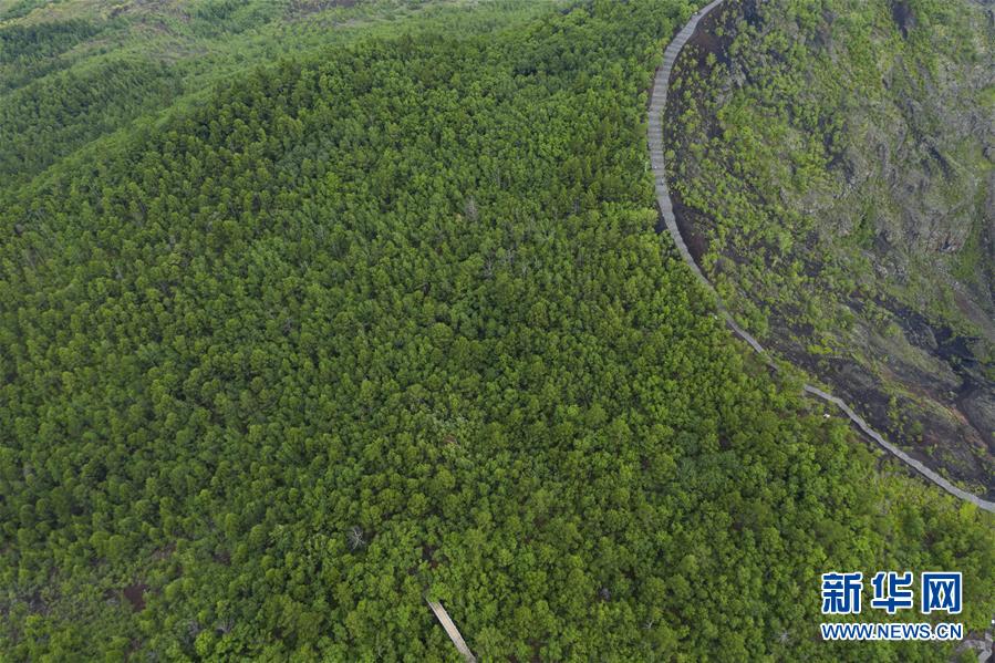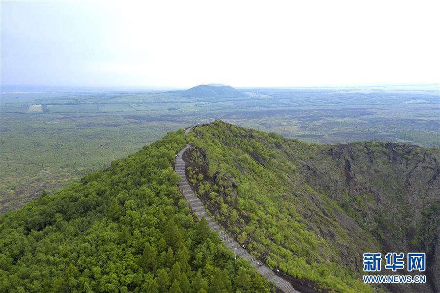這是7月3日拍攝的五大連池風(fēng)景區(qū)(無人機(jī)照片)。 時(shí)下,五大連池風(fēng)景區(qū)內(nèi)植被蔥蘢,在火山、熔巖臺地、火山堰塞湖的映襯下,景色壯美。 五大連池風(fēng)景區(qū)位于黑龍江省黑河市,是較為典型和完整的近代火山噴發(fā)遺跡,被喻為“天然的火山博物館”。 新華社記者 謝劍飛 攝