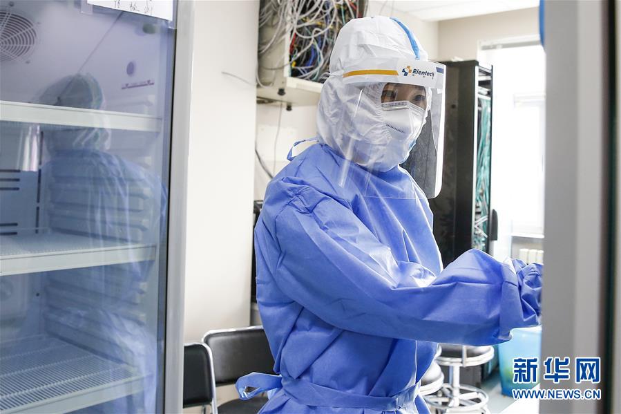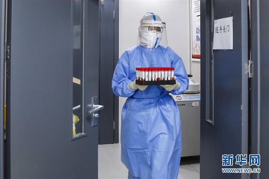 7月3日,中日友好醫(yī)院檢驗(yàn)科新冠核酸檢測(cè)實(shí)驗(yàn)室的檢驗(yàn)人員張?chǎng)稳〕鼋?jīng)過(guò)滅活的樣本。新華社記者張玉薇攝