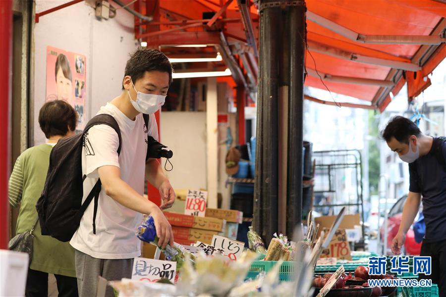 7月5日,在日本東京,人們戴口罩選購蔬果。據(jù)日本廣播協(xié)會電視臺5日統(tǒng)計,截至當(dāng)?shù)貢r間22時(北京時間21時),日本當(dāng)日新增新冠確診病例208例,連續(xù)3天單日新增超過200例,目前累計確診19822例,累計死亡977例。新華社記者杜瀟逸攝