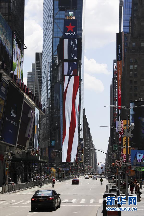 7月4日,美國紐約時(shí)報(bào)廣場上的行人和車輛稀少。當(dāng)日是美國獨(dú)立日,美國多地疫情仍面臨嚴(yán)峻形勢。美國約翰斯·霍普金斯大學(xué)實(shí)時(shí)統(tǒng)計(jì)數(shù)據(jù)顯示,美國累計(jì)新冠確診病例4日已超過280萬例。新華社記者王迎攝
