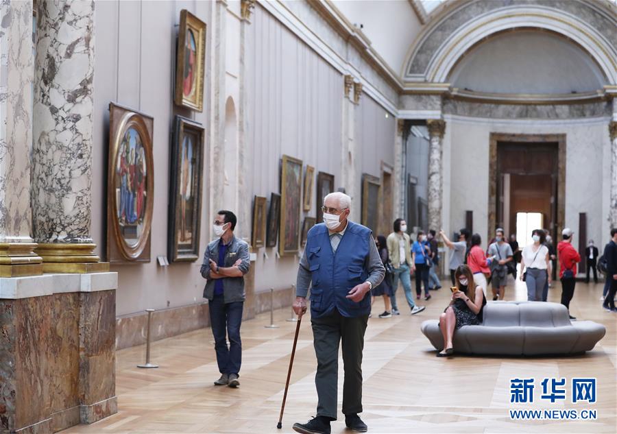 7月6日,人們?cè)诜▏?guó)巴黎盧浮宮博物館參觀。因新冠病毒疫情關(guān)閉3個(gè)多月后,法國(guó)盧浮宮博物館于6日重新開(kāi)放。新華社記者高靜攝