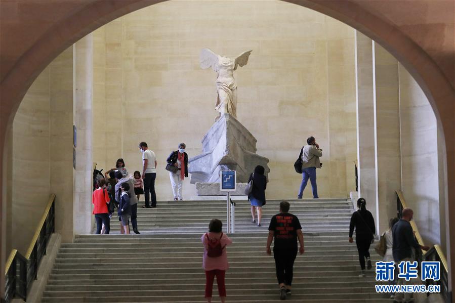 7月6日,在法國(guó)巴黎盧浮宮博物館,人們參觀雕塑《薩莫色雷斯勝利女神》。因新冠病毒疫情關(guān)閉3個(gè)多月后,法國(guó)盧浮宮博物館于6日重新開(kāi)放。新華社記者高靜攝