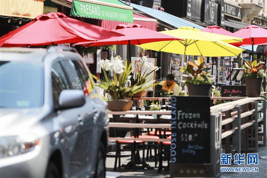 7月6日,顧客在美國(guó)紐約一家餐廳的戶外餐區(qū)就餐。當(dāng)天,紐約進(jìn)入重啟第三階段,美甲店、按摩店等個(gè)人護(hù)理業(yè)在經(jīng)歷近4個(gè)月的停業(yè)后被允許重新開(kāi)放。因防疫需要,原本應(yīng)在第三階段開(kāi)放的餐飲業(yè)室內(nèi)就餐仍處于暫停狀態(tài)。新華社記者王迎攝