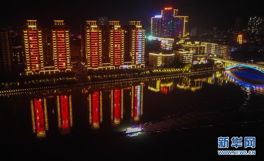 這是融安縣城夜色(7月7日攝,無(wú)人機(jī)照片)。夏夜的廣西融安縣城燈火璀璨,景色迷人。新華社記者張愛林?jǐn)z