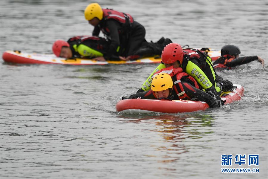 7月7日,吳興區(qū)消防救援大隊(duì)隊(duì)員在演練水上救援,以備搶險(xiǎn)。近日,位于浙江北部的湖州市遭遇多輪降雨,東部平原河網(wǎng)普遍超警戒水位,水庫(kù)山塘高位運(yùn)行。7月5日12時(shí)30分,湖州市人民政府防汛防旱指揮部將防汛應(yīng)急響應(yīng)提升至Ⅲ級(jí),要求各地密切監(jiān)測(cè)汛情,切實(shí)做好各項(xiàng)防范工作,確保安全度汛。新華社記者黃宗治攝