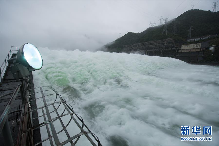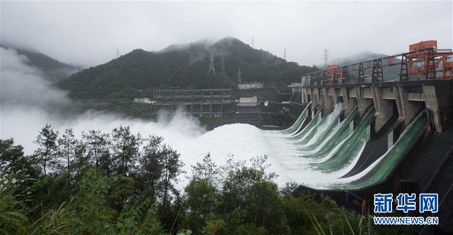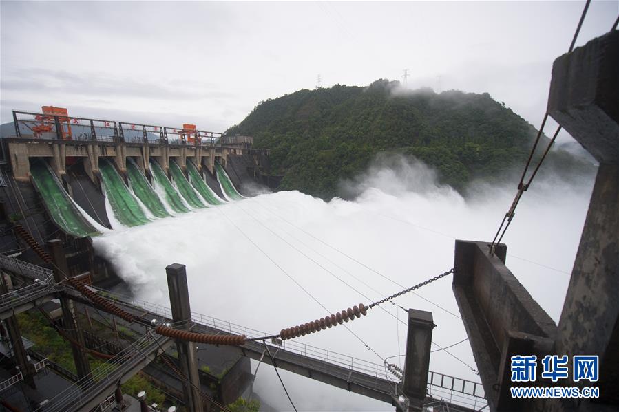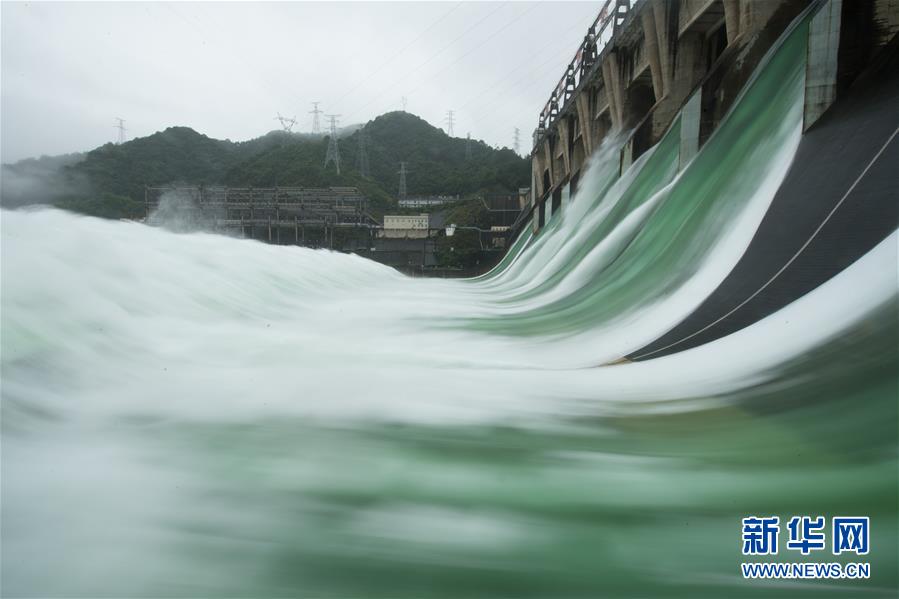 7月7日下午開(kāi)啟7孔泄洪的新安江水庫(kù)。受持續(xù)降水影響,浙江新安江水庫(kù)水位持續(xù)快速上升。繼當(dāng)日10時(shí)開(kāi)啟3孔、12時(shí)開(kāi)啟5孔泄洪后,新安江水庫(kù)于16時(shí)增加到7孔泄洪。新安江水庫(kù)是華東地區(qū)最大的水庫(kù),在錢(qián)塘江流域的防洪度汛中起到關(guān)鍵作用。新華社記者翁忻旸攝