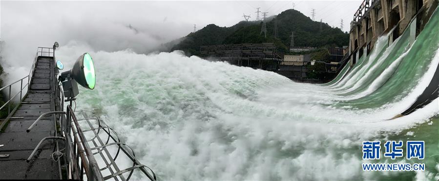 7月7日下午開啟7孔泄洪的新安江水庫(手機全景模式拍攝)。受持續(xù)降水影響,浙江新安江水庫水位持續(xù)快速上升。繼當(dāng)日10時開啟3孔、12時開啟5孔泄洪后,新安江水庫于16時增加到7孔泄洪。新安江水庫是華東地區(qū)最大的水庫,在錢塘江流域的防洪度汛中起到關(guān)鍵作用。新華社記者翁忻旸攝