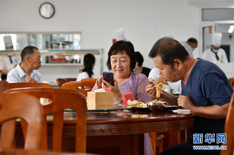 7月7日,老人在付村康養(yǎng)中心(老人家食堂)用餐。新華社記者李然攝