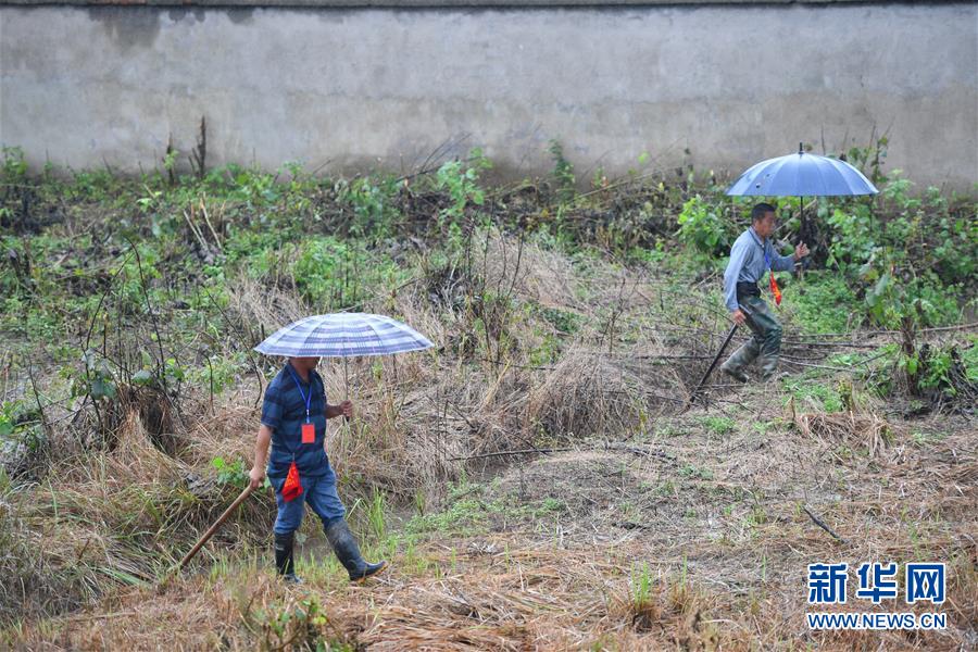 工作人員在益陽市大通湖區(qū)東大堤巡查(7月8日攝)。新華社記者陳澤國攝