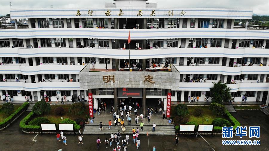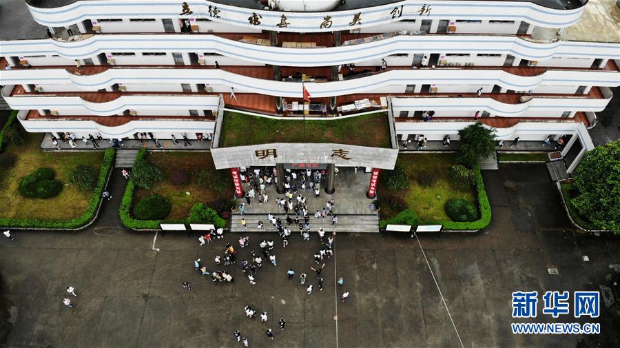 7月9日,考生進(jìn)入歙縣第二中學(xué)考點(diǎn)(無人機(jī)照片)。受強(qiáng)降雨影響,2020年高考安徽歙縣考區(qū)7月7日未能如期開考,經(jīng)研究并報教育部批準(zhǔn),歙縣考區(qū)于9日啟用2020年普通高等學(xué)校招生全國統(tǒng)一考試語文、數(shù)學(xué)(文、理)科目副題進(jìn)行考試。新華社記者黃博涵攝