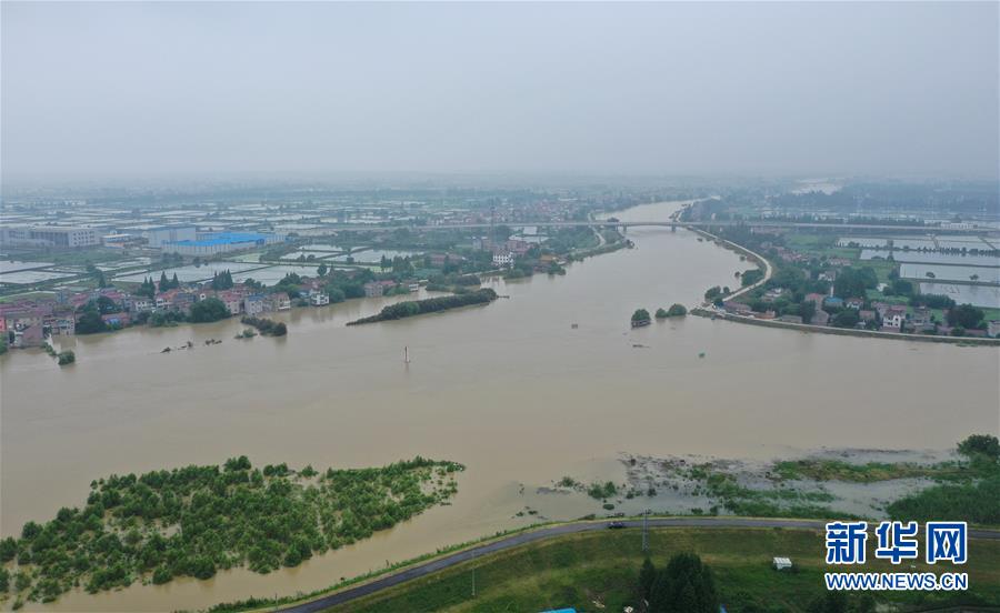 7月9日拍攝的水陽(yáng)江南京高淳段(無(wú)人機(jī)照片)。入梅以來(lái),江蘇省南京市高淳區(qū)多次遭受強(qiáng)降雨,加上上游來(lái)水量大,截至7月9日8時(shí),高淳境內(nèi)水陽(yáng)江水碧橋水位達(dá)到13.01米,超警戒水位2.51米。7月7日水陽(yáng)江區(qū)域已啟動(dòng)防汛應(yīng)急Ⅰ級(jí)響應(yīng)。高淳區(qū)在水陽(yáng)江區(qū)域堤防沿線設(shè)立241個(gè)防汛值守點(diǎn),實(shí)施24小時(shí)值班值守。新華社記者季春鵬攝