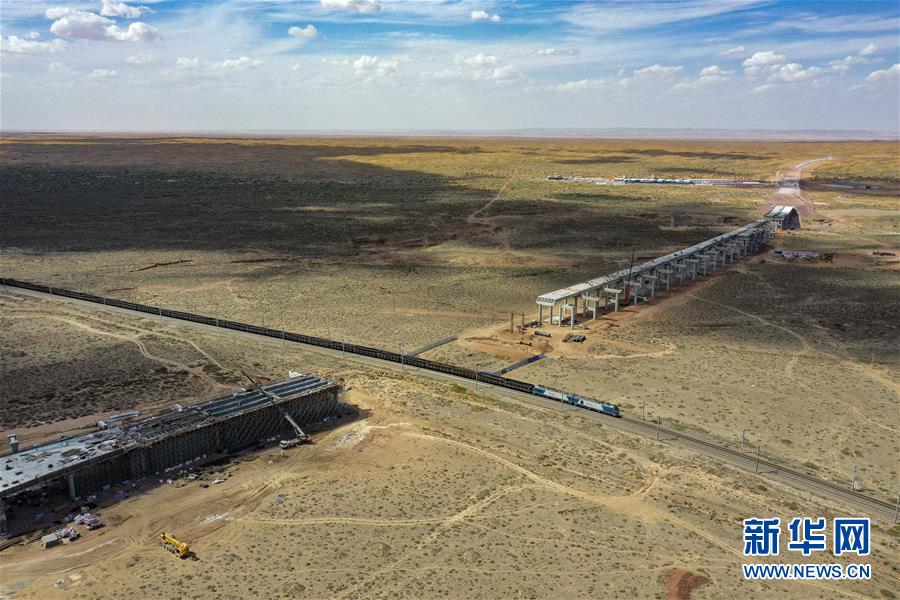 烏瑪高速青銅峽至中衛(wèi)段穿越騰格里沙漠的18公里路段,與中國(guó)首條沙漠鐵路——包蘭鐵路交匯(7月10日攝,無(wú)人機(jī)照片)。盛夏時(shí)節(jié),位于寧夏境內(nèi)的烏瑪(內(nèi)蒙古烏海市至青?,斍呖h)高速青銅峽至中衛(wèi)段正在抓緊施工建設(shè)。該路段主線全長(zhǎng)122.9公里,其中穿越騰格里沙漠腹地的18公里公路是寧夏建設(shè)的首條沙漠高速公路,預(yù)計(jì)2021年建成通車(chē)。新華社記者馮開(kāi)華攝。