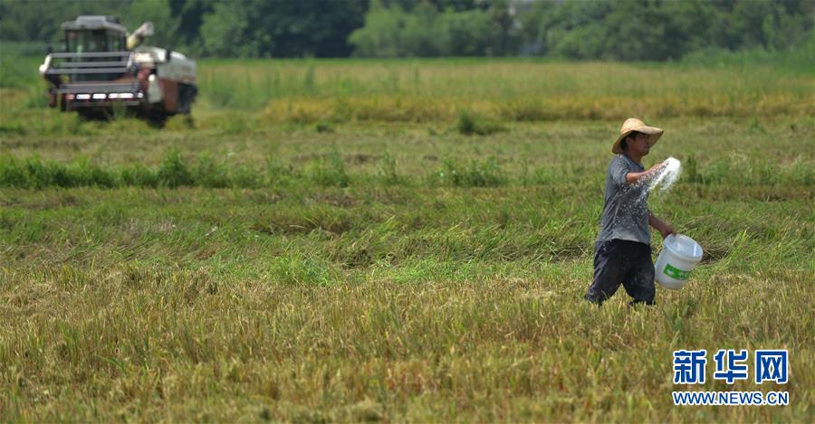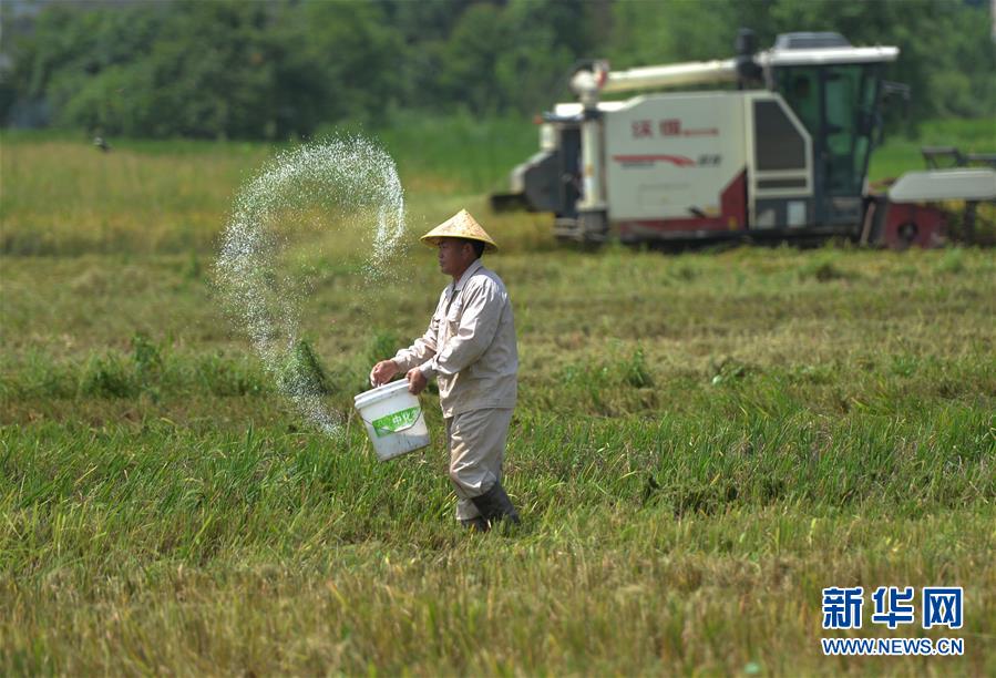 7月11日,村民在湖南省衡陽市衡陽縣臺(tái)源鎮(zhèn)臺(tái)九村收割后的稻田施肥,為種植晚稻做準(zhǔn)備。近日,湖南各地農(nóng)村陸續(xù)進(jìn)入“雙搶”季,農(nóng)民緊抓農(nóng)時(shí),搶收搶種,力爭糧食穩(wěn)產(chǎn)豐收。新華社記者趙眾志攝