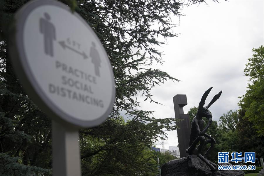 7月11日,在美國華盛頓的國家藝術(shù)畫廊雕塑公園,一座雕塑旁立著保持社交距離的提示牌。美國約翰斯·霍普金斯大學11日發(fā)布的新冠疫情最新統(tǒng)計數(shù)據(jù)顯示,截至美國東部時間11日18時34分(北京時間12日6時34分),美國累計確診病例3242073例。新華社記者劉杰攝