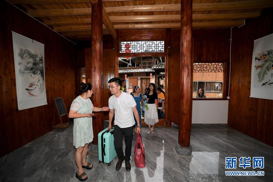 7月3日,來自福州的游客準(zhǔn)備入住浦源村鯉魚溪畔的一家民宿。新華社記者 姜克紅 攝