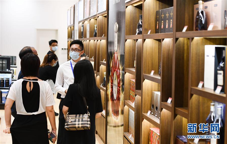 7月12日,游客在??谌赵聫V場(chǎng)免稅店選購(gòu)酒類(lèi)產(chǎn)品。新華社記者 楊冠宇 攝