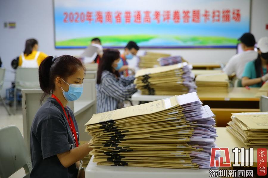 2020年7月13日,在海南師范大學(xué)高考評卷場,工作人員仔細(xì)拆封考卷并進(jìn)行掃描入電腦,整個過程井然有序。在評卷現(xiàn)場的入口,除了有武警把守之外,所有工作人員進(jìn)入到評卷場均有專人使用手柄式金屬探測器對其進(jìn)行安檢,并通過身份證識別系統(tǒng)中進(jìn)行身份識別,方可以進(jìn)入。考生答題卡由武警24小時值守,并實行嚴(yán)密的視頻監(jiān)控。