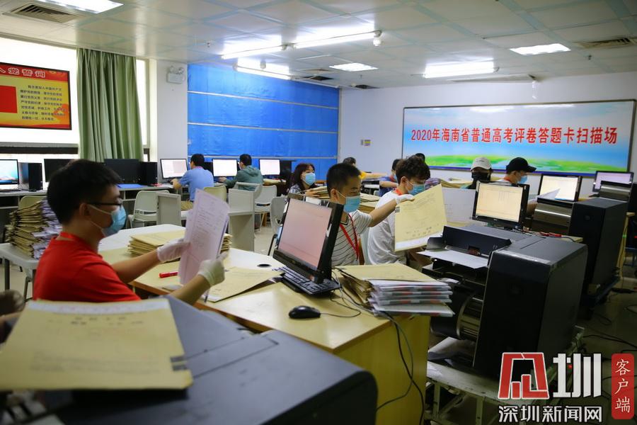 2020年7月13日,在海南師范大學(xué)高考評(píng)卷場(chǎng),工作人員仔細(xì)拆封考卷并進(jìn)行掃描入電腦,整個(gè)過(guò)程井然有序。在評(píng)卷現(xiàn)場(chǎng)的入口,除了有武警把守之外,所有工作人員進(jìn)入到評(píng)卷場(chǎng)均有專(zhuān)人使用手柄式金屬探測(cè)器對(duì)其進(jìn)行安檢,并通過(guò)身份證識(shí)別系統(tǒng)中進(jìn)行身份識(shí)別,方可以進(jìn)入。考生答題卡由武警24小時(shí)值守,并實(shí)行嚴(yán)密的視頻監(jiān)控。