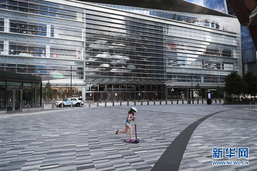 7月14日,在美國紐約一家尚未恢復(fù)店內(nèi)購物的購物中心外,一名女孩在空曠的廣場(chǎng)上玩耍。美國約翰斯·霍普金斯大學(xué):截至北京時(shí)間15日6時(shí)34分,全球新冠確診病例達(dá)13258016例,死亡病例為576752例。美國是全球疫情最嚴(yán)重的國家,確診病例達(dá)3416222例,死亡病例為136319例。新華社記者 王迎 攝