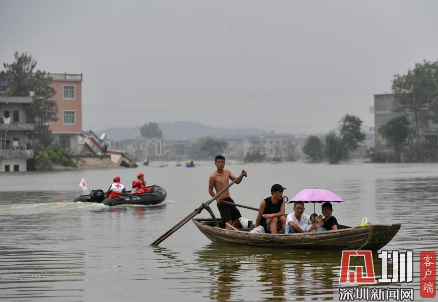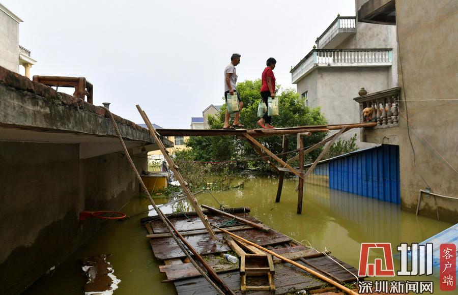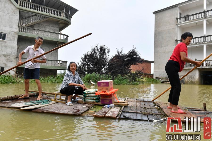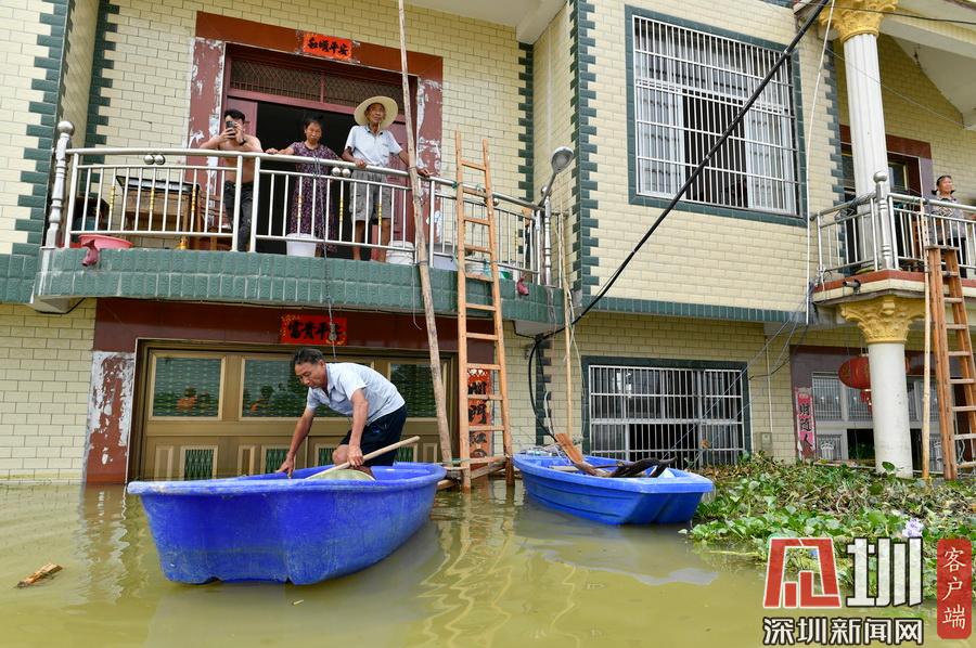 2020年7月15日,江西省鄱陽縣油墩街鎮(zhèn)同興村,村莊受到洪水圍困,大部分村民已經(jīng)被轉(zhuǎn)移出去,仍有少數(shù)村民選擇留守家中積極自救繼續(xù)生活。7月8日晚,鄱陽縣油墩街鎮(zhèn)西江因特大暴雨出現(xiàn)漫堤決口,5個(gè)行政村被洪水圍困,數(shù)萬名群眾被及時(shí)疏散轉(zhuǎn)移。同興村村民張瑤康回憶起了當(dāng)時(shí)的場景,“水一下子就涌進(jìn)來,等緩過神來趕緊向二樓轉(zhuǎn)移一樓的物品。洪水來時(shí)只從一樓搶到了一些輕便易拿的東西,冰箱、洗衣機(jī)之類的大物件,至今仍浸泡在一樓水中?!?5日,記者跟隨張瑤康乘船回家,抵達(dá)后看到,一樓淹沒在水中,一個(gè)綁在二樓護(hù)欄的木梯成為進(jìn)出“家門”的唯一通道?!懊刻靹澊ゴ謇镞\(yùn)送水和食物,家里有煤氣罐和灶臺(tái)。因?yàn)?0多歲的老母親行動(dòng)不便,我們選擇留守家中?!薄半m然對岸就有安置點(diǎn),但還是更愿待在自己家里,一來是不愿意給政府添麻煩,二來能每天看著自己的房子心里踏實(shí)?!蓖d村村民張長來夫婦帶著剛剛領(lǐng)到的大米、方便面、飲用水乘船回到家中。記者在現(xiàn)場看到,隨著各方救援力量和物資的匯聚,被洪水圍困的村民生活雖有不便,但生活仍在繼續(xù)?!胺孔硬坏?,家就在,我們要積極面對,早日重建家園?!睆埇幙蹈嬖V記者。