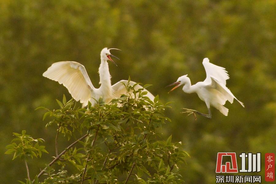 山東青島“鷺舞”林間 宛如一幅寫意山水畫