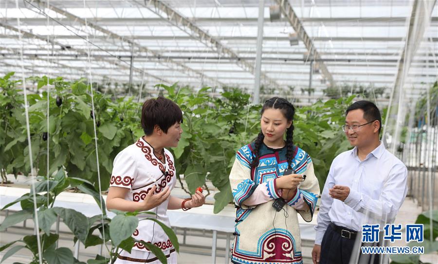 7月18日,在涼山州昭覺縣粵川東西部扶貧協(xié)作項目產(chǎn)業(yè)園,昭覺縣副縣長徐航(右)和王涼萍(左)在直播活動中向網(wǎng)友推薦產(chǎn)業(yè)園出產(chǎn)的水果番茄。7月16日至18日,來自四川省涼山彝族自治州、廣東省佛山市的十余名干部攜手大涼山網(wǎng)絡主播,走進電商“云展銷”直播間和粵川東西部扶貧協(xié)作項目產(chǎn)業(yè)園,為涼山11個縣的農(nóng)特產(chǎn)品直播“帶貨”,通過電商銷售帶動消費扶貧。新華社記者江宏景攝