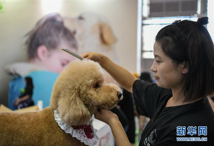 7月19日,在成都世紀(jì)城新國際會展中心,一家寵物美容學(xué)校的工作人員演示給寵物犬梳毛。當(dāng)日,第九屆成都國際寵博會進(jìn)入最后一天。此次展會展出面積30000平方米,匯聚國內(nèi)外品牌企業(yè)和產(chǎn)品,覆蓋中西部地區(qū)寵物行業(yè)食品、用品、醫(yī)療和服務(wù)等領(lǐng)域。新華社記者王曦攝
