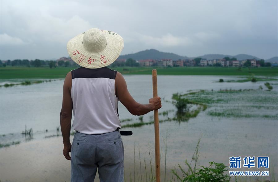 7月9日,邵忠如在圩堤上觀察水情,不遠(yuǎn)處就是他的村子。邵忠如是江西省樂平市樂港鎮(zhèn)邵灣村黨支部書記,今年56歲,負(fù)責(zé)中洲圩中一段700多米長的圩堤的巡堤守堤工作。身前是洪水,身后是村子和稻田,老邵不敢有半點(diǎn)疏忽。6天6夜,老邵和村民們不間斷地值守在圩堤上,一天4個班,一班6人,每半小時巡堤一次,發(fā)現(xiàn)險(xiǎn)情立即處置。作為村支書,老邵更是幾乎全天都在圩堤上,實(shí)在困了才會睡一會兒。新華社記者萬象攝