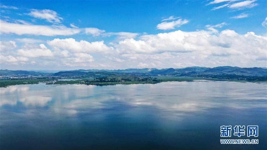 與威寧縣城緊緊相依的草海(6月10日攝無人機照片)。新華社記者楊文斌攝