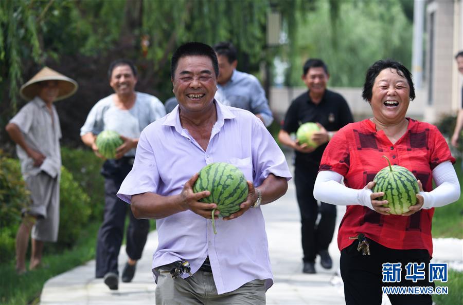 7月22日,廟兜村的村民們在進行運西瓜比賽。當(dāng)日是大暑節(jié)氣,浙江省湖州市吳興區(qū)織里鎮(zhèn)廟兜村舉行了趣味“賽西瓜”比賽,迎接這個“火熱”的節(jié)氣。廟兜村種植有500多畝西瓜,目前正值西瓜豐收的時節(jié),村民們用“賽西瓜”的形式,感受豐收的喜悅。新華社記者徐昱攝