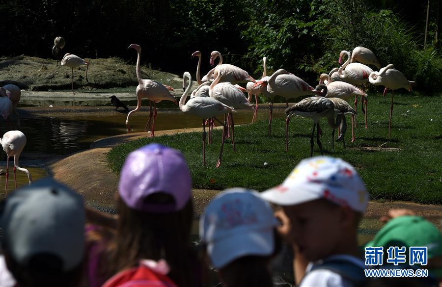 這是7月23日在奧地利維也納拍攝的美泉宮動物園里的火烈鳥。位于奧地利維也納的美泉宮動物園在夏季吸引了不少市民帶著孩子前來游玩。美泉宮動物園位于世界文化遺產美泉宮景區(qū)內,從5月中旬疫情措施解封重新開放后,逐漸迎來游客。新華社記者郭晨攝