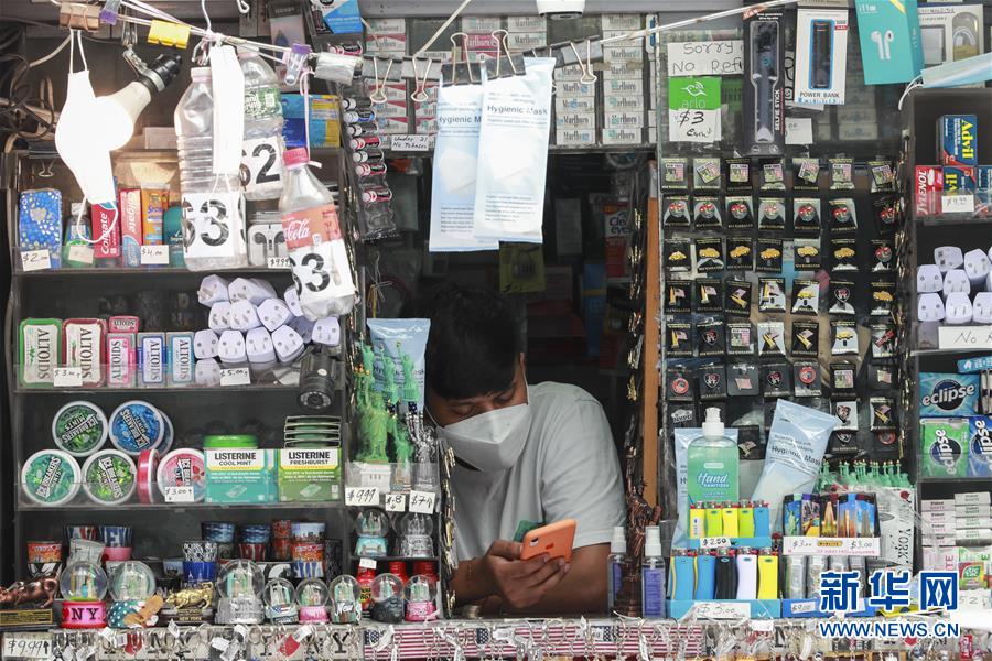 7月23日,在美國(guó)紐約時(shí)報(bào)廣場(chǎng),一名小販等待顧客。美國(guó)約翰斯·霍普金斯大學(xué)23日發(fā)布的新冠疫情最新統(tǒng)計(jì)數(shù)據(jù)顯示,美國(guó)累計(jì)確診病例超過(guò)400萬(wàn)例。數(shù)據(jù)顯示,截至美國(guó)東部時(shí)間23日15時(shí)34分(北京時(shí)間24日3時(shí)34分),美國(guó)累計(jì)確診病例4007859例,累計(jì)死亡病例143846例。新華社記者王迎攝