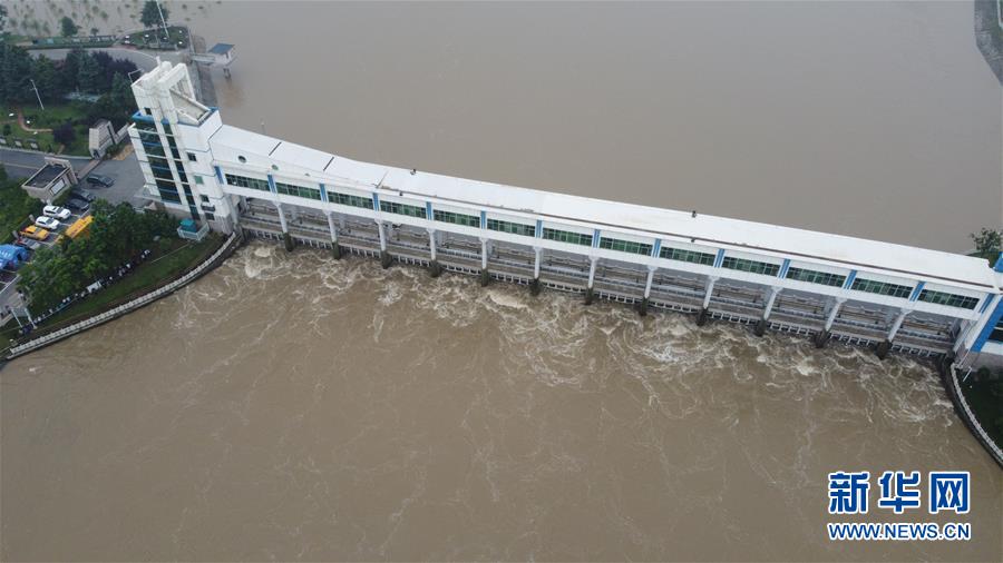 這是7月23日在安徽省阜南縣拍攝的正在關(guān)閘的淮河王家壩閘(無人機照片)。當(dāng)日13時,淮河干流王家壩閘關(guān)閘,停止向蒙洼蓄洪區(qū)泄洪。新華社記者張端攝