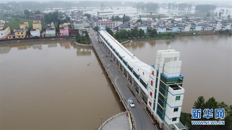 這是7月23日在安徽省阜南縣拍攝的關(guān)閘后的淮河王家壩閘(無人機照片)。當(dāng)日13時,淮河干流王家壩閘關(guān)閘,停止向蒙洼蓄洪區(qū)泄洪。新華社記者張端攝