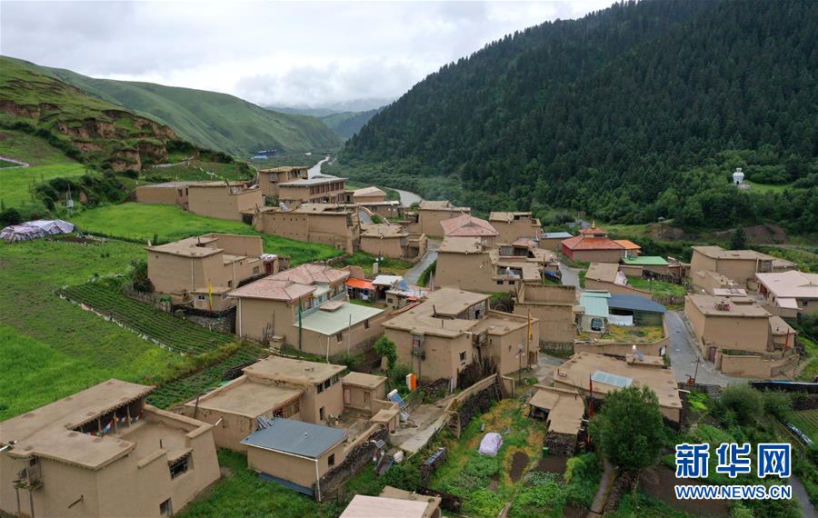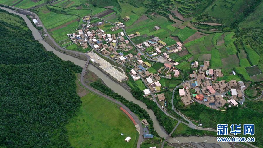 7月5日拍攝的阿壩縣查理鄉(xiāng)神座村(無人機(jī)照片)。新華社記者陳天湖攝