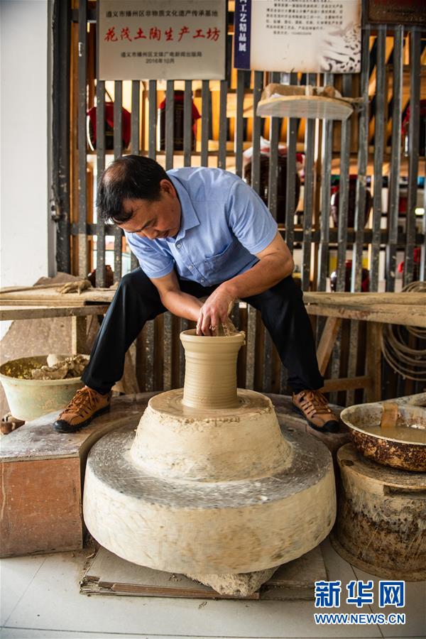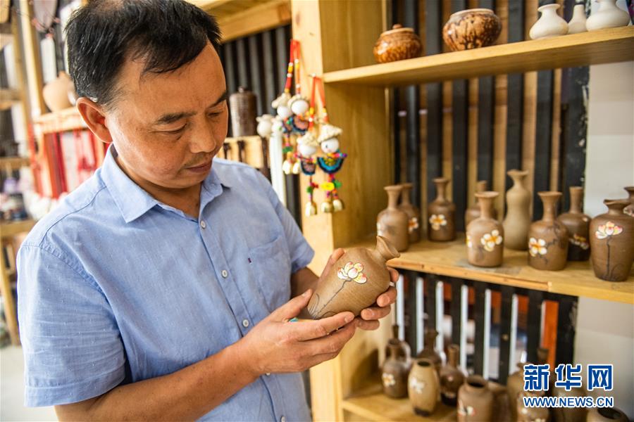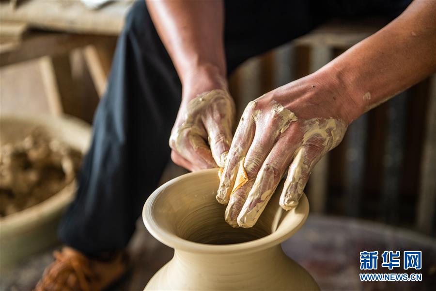 母先才在制作陶器(7月14日攝)。新華社記者 陶亮 攝
