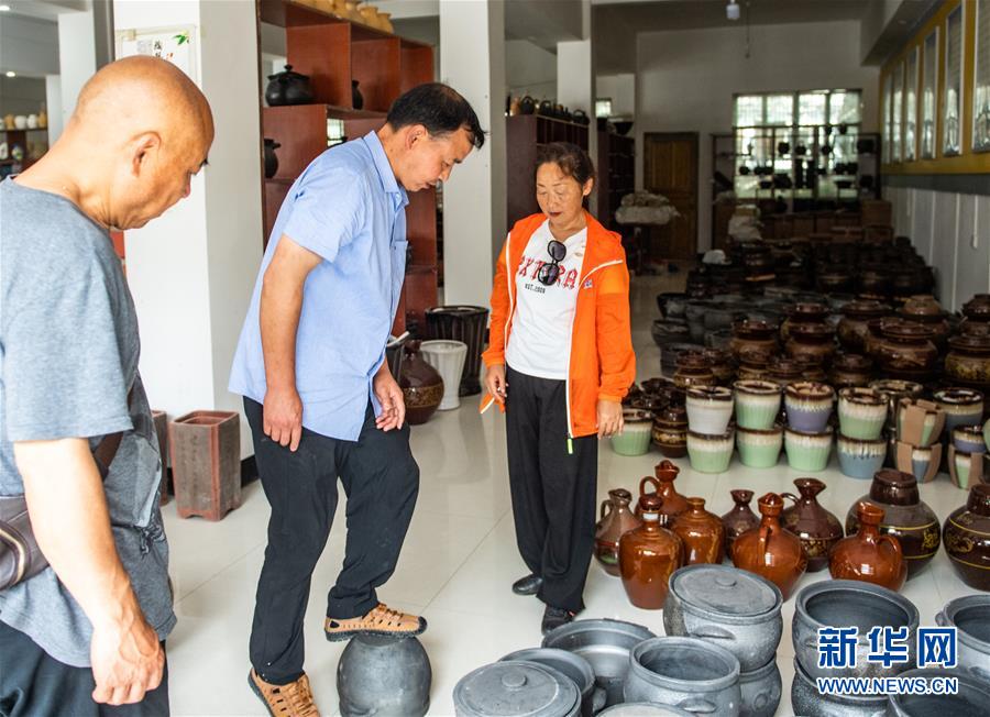 母先才在查看售賣(mài)的陶器產(chǎn)品(6月16日攝)。新華社記者 陶亮 攝