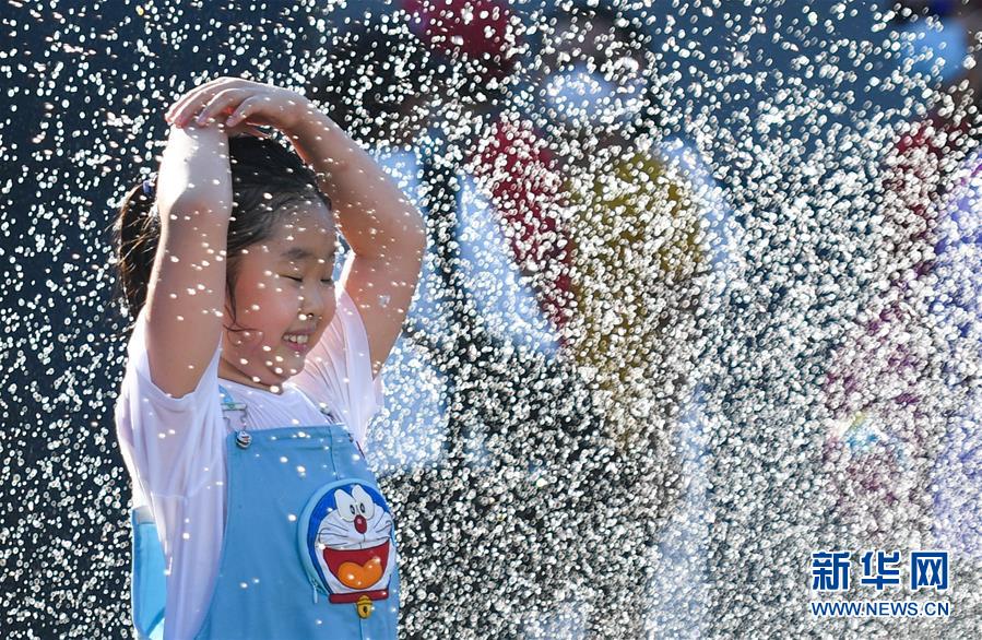 7月24日,一名小女孩在北京華熙LIVE·五棵松商業(yè)街區(qū)的一處噴泉戲水。北京市氣象局7月24日傍晚發(fā)布稱,24日截至16時30分,平原大部分地區(qū)出現(xiàn)37℃以上高溫天氣,局地氣溫超過40℃。北京市已于23日發(fā)布高溫藍(lán)色預(yù)警,預(yù)計25日全市大部分地區(qū)日最高氣溫仍將達(dá)35℃以上。新華社記者陳曄華攝