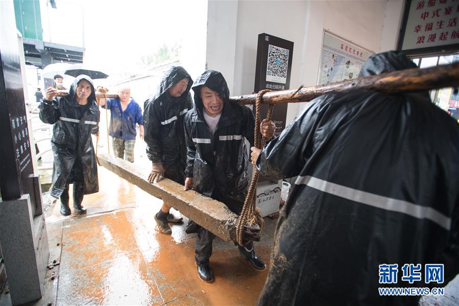 7月6日,工作人員在武漢龍王廟封堵閘口。新華社記者 肖藝九 攝