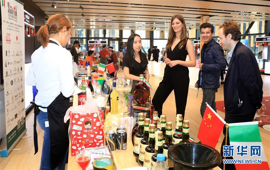 2020年5月8日,虹橋品匯國(guó)別文化節(jié)云游意大利主題展在上海虹橋進(jìn)口商品展示交易中心舉行,嘉賓在一家意大利酒類(lèi)企業(yè)的展臺(tái)前駐足觀看。新華社記者 方喆 攝