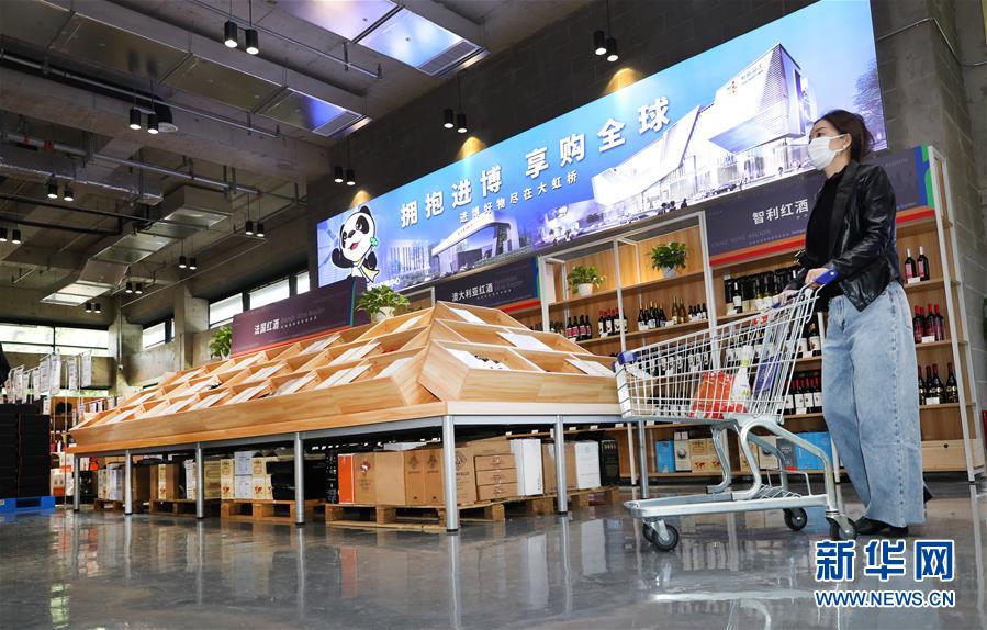 2020年4月25日,“擁抱進(jìn)博·享購(gòu)全球”虹橋品匯食品健康館在上海虹橋進(jìn)口商品展示交易中心開(kāi)業(yè),顧客在虹橋品匯食品健康館購(gòu)物。新華社記者 方喆 攝