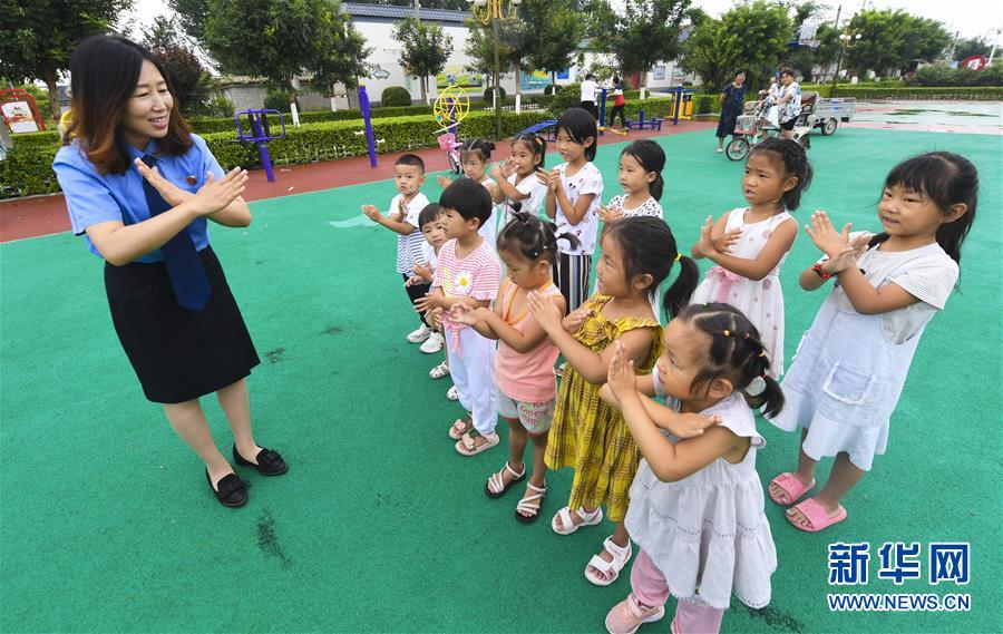 7月26日,河北省阜城縣人民檢察院工作人員在馮塔頭村給留守兒童講解自我防護(hù)知識(shí)。當(dāng)日,為關(guān)愛農(nóng)村留守兒童,河北省阜城縣人民檢察院工作人員走進(jìn)阜城鎮(zhèn)馮塔頭村,開展“做自己的守護(hù)天使”主題法治教育課,幫助少年兒童從小樹立法治意識(shí),做好自我防護(hù)。新華社記者 李曉果 攝