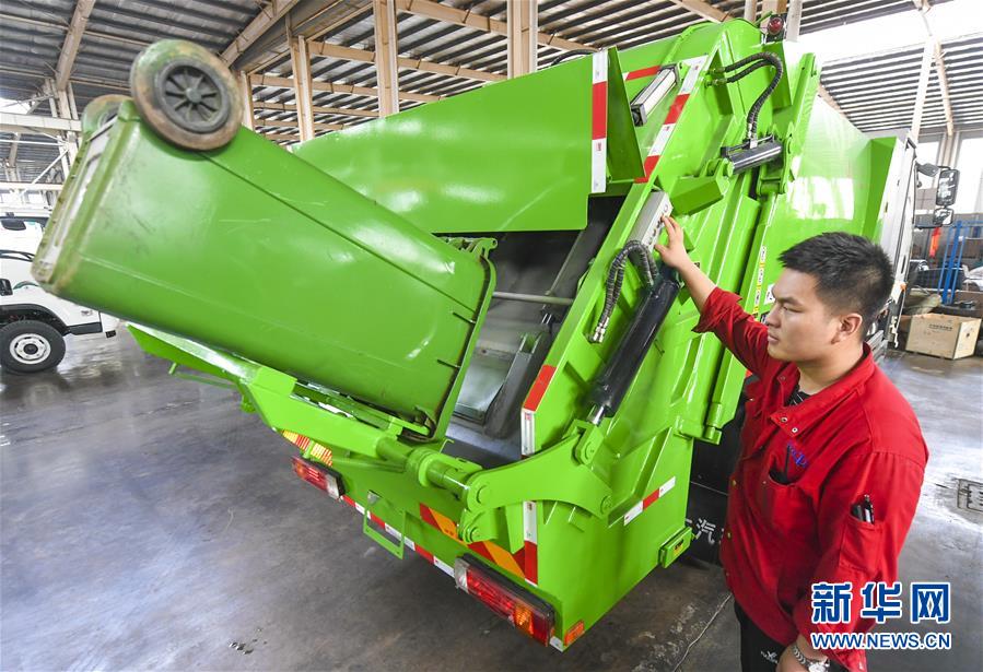 近年來(lái),河北景縣大力支持環(huán)衛(wèi)車制造企業(yè)技術(shù)創(chuàng)新和新產(chǎn)品研發(fā)力度,加強(qiáng)純電動(dòng)環(huán)衛(wèi)車輛的產(chǎn)品開(kāi)發(fā)。目前,位于該縣開(kāi)發(fā)區(qū)的新能源汽車制造公司已完成灑水車、洗掃車、抑塵車、多功能清洗車等多款純電動(dòng)新能源環(huán)衛(wèi)車的研發(fā)。新華社記者 李曉果 攝
