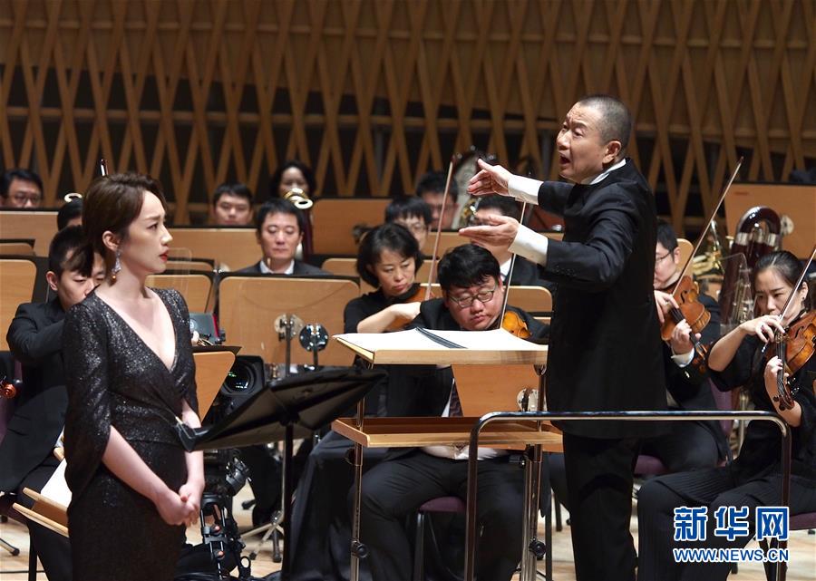 7月29日晚,作曲家譚盾(前右)在2020上海夏季音樂節(jié)閉幕音樂會(huì)上指揮。新華社記者任瓏攝