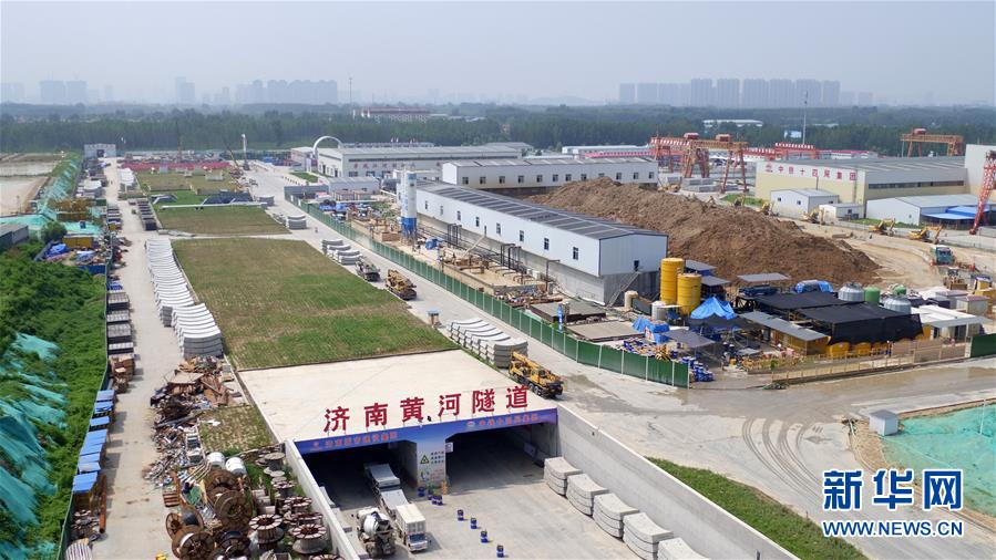 這是7月29日拍攝的“萬里黃河第一隧”——濟(jì)南黃河隧道工程施工工地(無人機(jī)照片)。新華社記者王凱攝