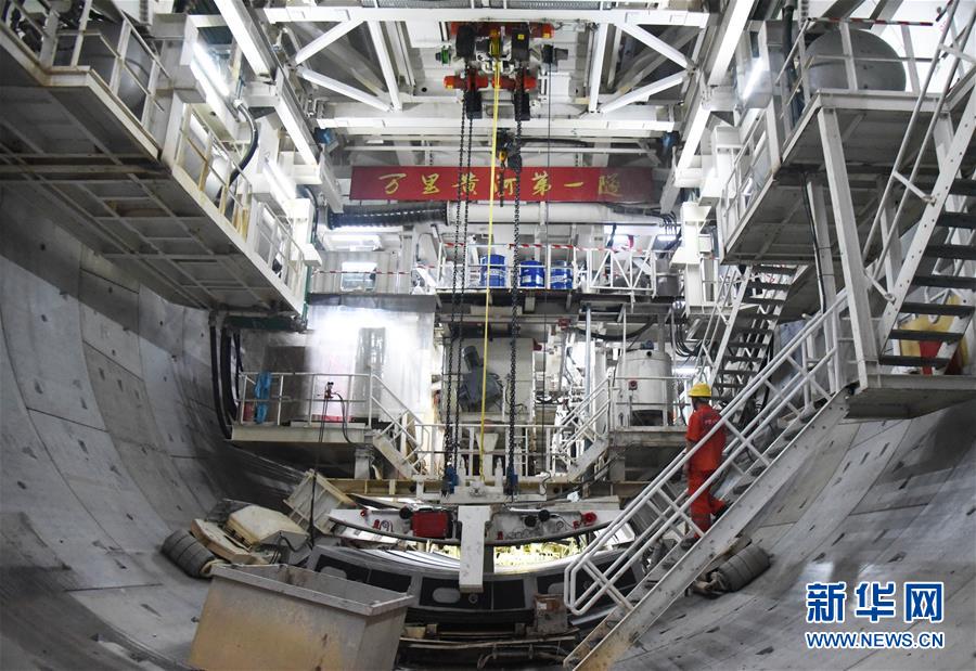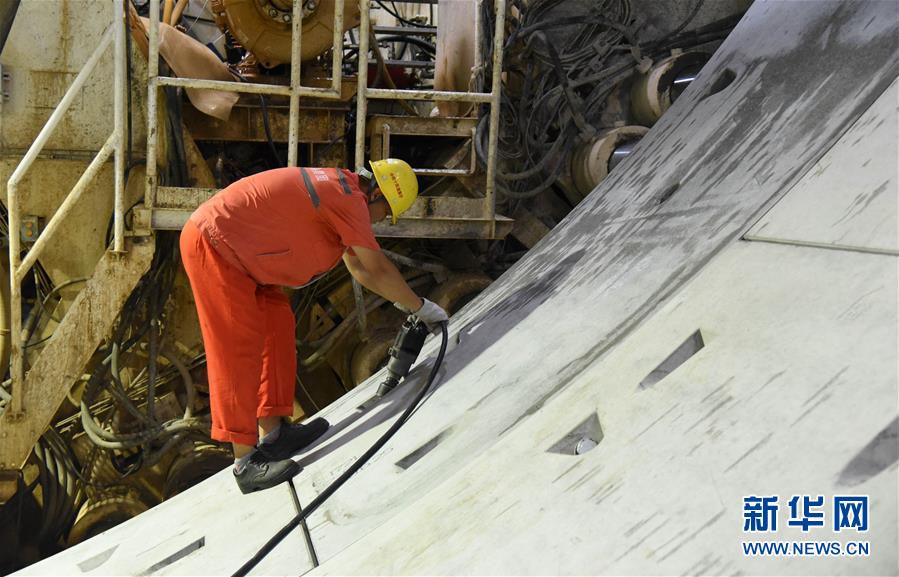 7月29日,“萬里黃河第一隧”——濟(jì)南黃河隧道工程施工人員在查看盾構(gòu)機(jī)工作情況。新華社記者王凱攝